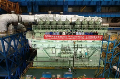 3月13日,由中國船舶集團旗下中國動力子公司中船動力下屬上海中船三井造船柴油機有限公司建造的全球首制CMD-WinGD 9X92DF-2.0 iCER雙燃料主機順利交付。該主機將安裝于滬東中華為法國達飛海運集團建造的13000TEU集裝箱船。