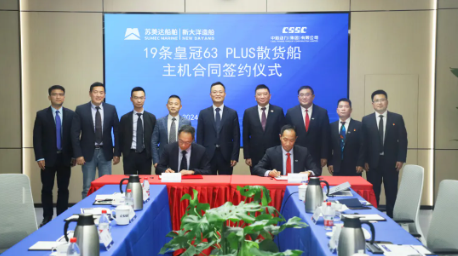 2024年5月15日,蘇美達股份下屬蘇美達船舶有限公司旗下新大洋造船有限公司與中國船舶集團下屬中船動力(集團)有限公司旗下滬東重機有限公司在滬簽訂了19條皇冠63 PLUS散貨船主機合同。蘇美達船舶黨委書記、董事長何雋,黨委副書記、總經(jīng)理徐斌,財務負責人朱長城,中船動力集團黨委書記、董事長李琤,黨委副書記、總經(jīng)理邵煜出席簽約儀式,新大洋造船副總經(jīng)理金文剛與中船動力集團副總經(jīng)理張仲領分別代表雙方簽字。新大洋造船、中船動力集團市場營銷中心以及滬東重機相關負責人一同參與見證。